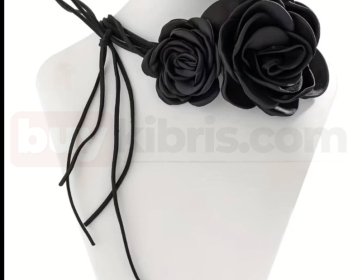 Siyah Gül Detaylı Bağlamalı Choker Kolye | buykibris.com