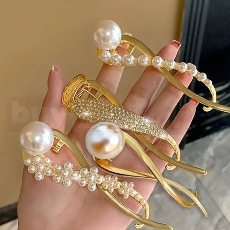 Zarif ve modern tasarımıyla öne çıkan bu metal saç tokası, inci ve parlak taş detaylarıyla saç modellerine şık bir dokunuş kazandırır. Gold ve gümüş renk alternatifleri bulunan modeller, hem sade hem de gösterişli kombinlere uyum sağlayacak şekilde tasarlanmıştır.