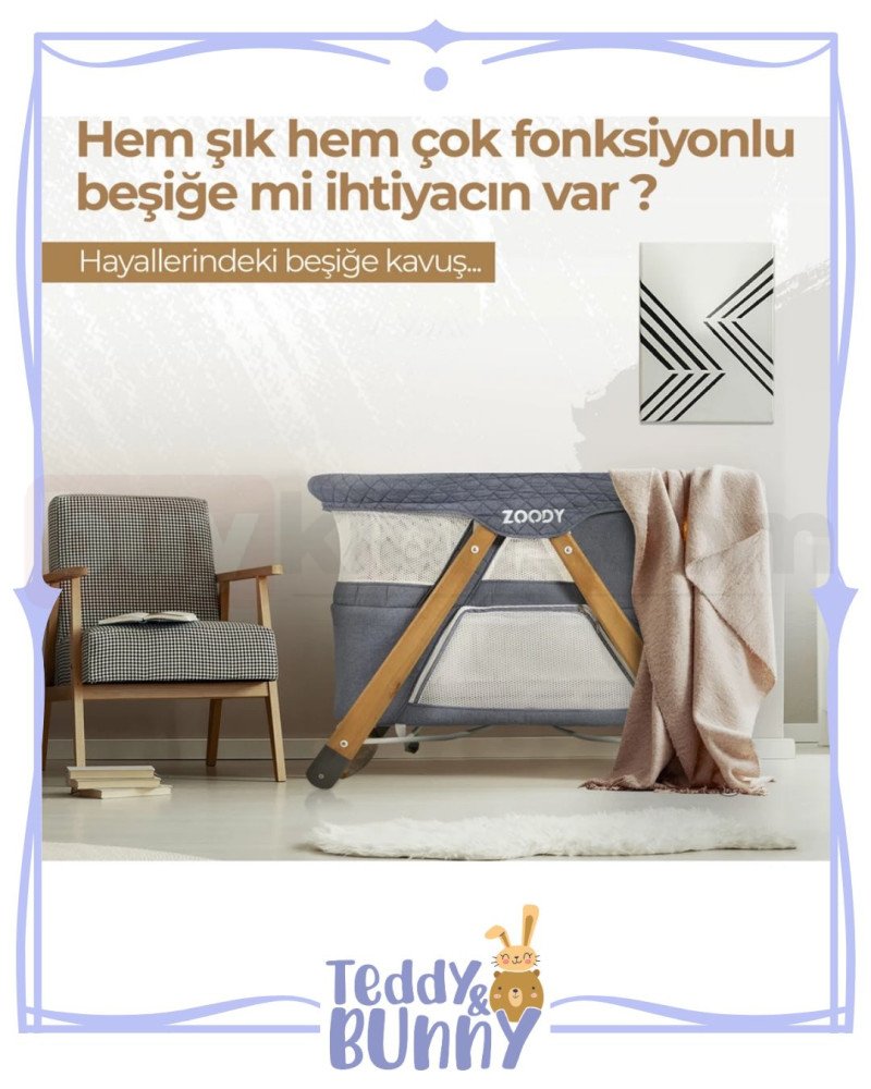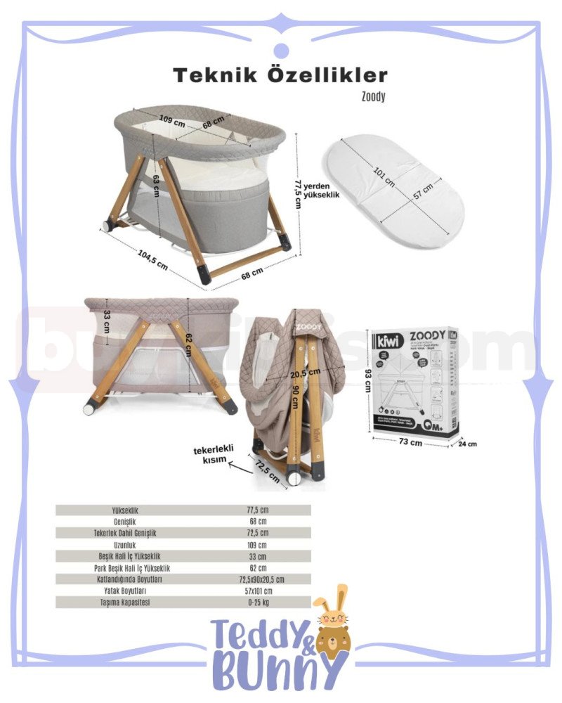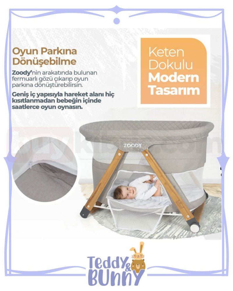 Bebeklerin ve çocukların konforlu ve güvenli bir şekilde zaman geçirebileceği, benzersiz bir tasarıma sahip Kiwi Zoody oyun parkı beşik ile tanışın! Bu çok fonksiyonlu ürün, bebek beşiği ve oyun parkı olarak kullanılabilen özellikleri ile öne çıkıyor.