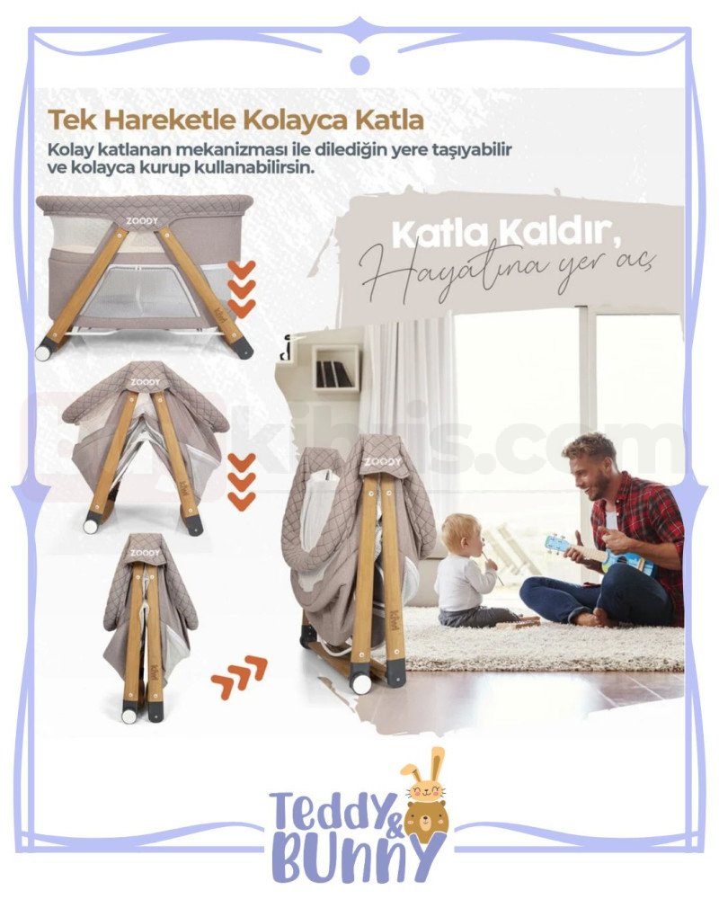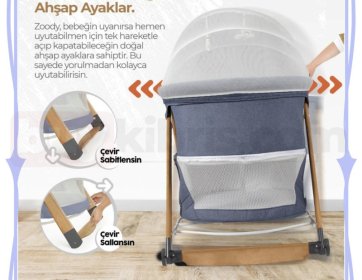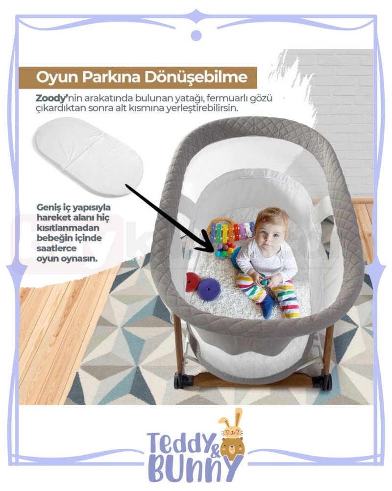 Kiwi Zoody Oyun Parkı Beşik, Katlanır, Sallanır, Anne Yanı Bebek Beşiği