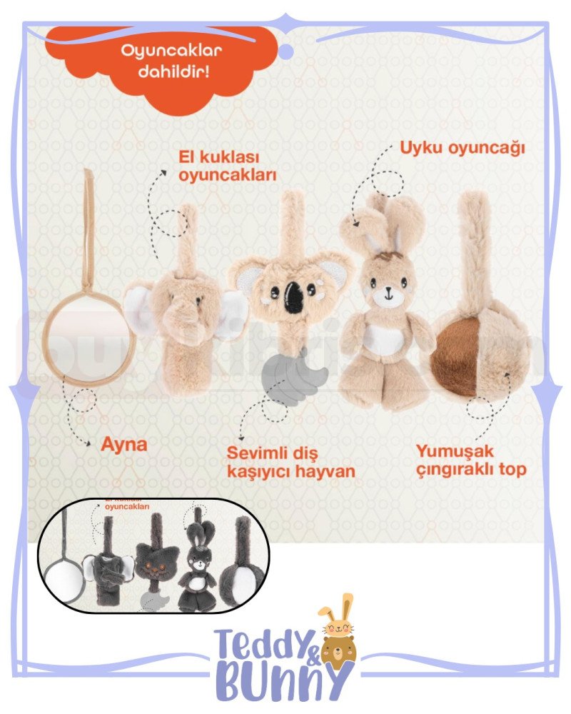 🌟KENDİNİ KEŞİF İÇİN OYUNCAKLAR: Bebeğinizin duyusal gelişimini destekleyen çıngıraklı top, diş kaşıyıcı, ayna ve kukla ve uyku arkadaşından oluşan sevimli oyuncaklar.