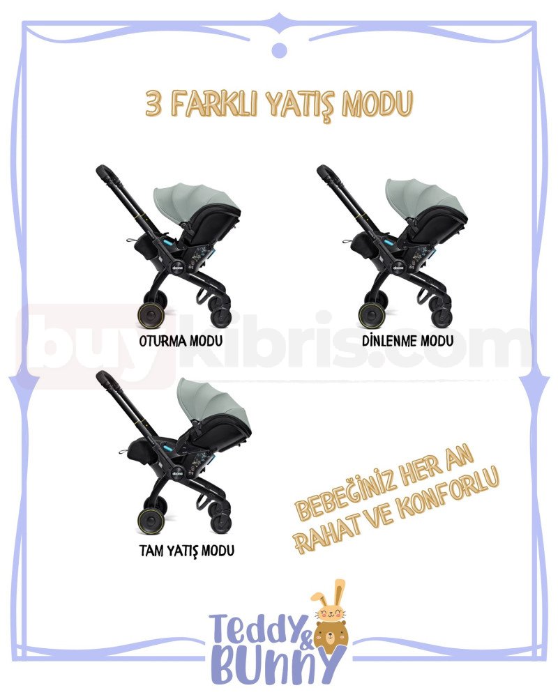 -3 mod: oto koltuğu, çekmeli taşıma, bebek arabası