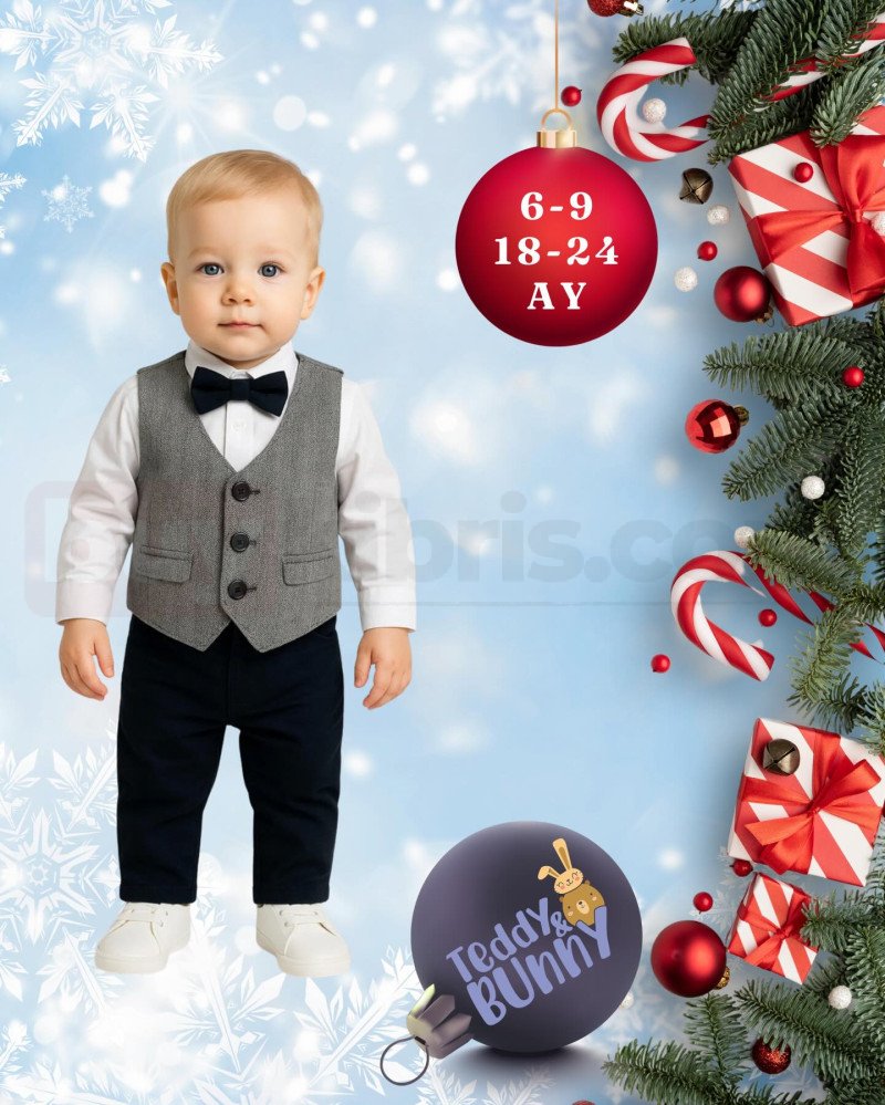 Gömlek, papyon ve yelek detaylarıyla bebekler için klasik ve şık bir kombin sunar. Özel günlerde bebeğinizin tarzını tamamlayan zarif bir takımdır.