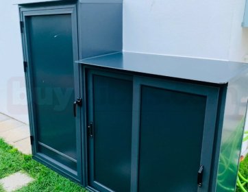 Dengez Alüminyum tarafından üretilen bu özel tasarım alüminyum bahçe dolabı, dış mekanlarda hem depolama hem de teknik ekipmanları koruma amacıyla tasarlanmıştır. Dayanıklı alüminyum malzemeden üretilen sistem, yağmur, güneş ve dış hava koşullarına karşı yüksek direnç sağlayarak uzun yıllar sorunsuz kullanım sunar. Sağlam kapak yapısı ve güvenli kilit sistemi sayesinde içeride bulunan eşyalar güvenle muhafaza edilir.