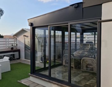 Bu projede dış mekânı dört mevsim kullanılabilir hale getiren modern cam kapama veranda sistemi uygulanmıştır. Siyah alüminyum profiller ve geniş cam paneller sayesinde hem şık hem de ferah bir yaşam alanı oluşturulmuştur. Sürgülü cam sistemi sayesinde alan kolayca açılıp kapanabilir ve dış ortamla bağlantı pratik şekilde sağlanır.