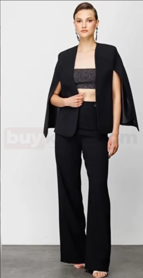Kadın Siyah Pelerin Kol Blazer Ceket | buykibris.com