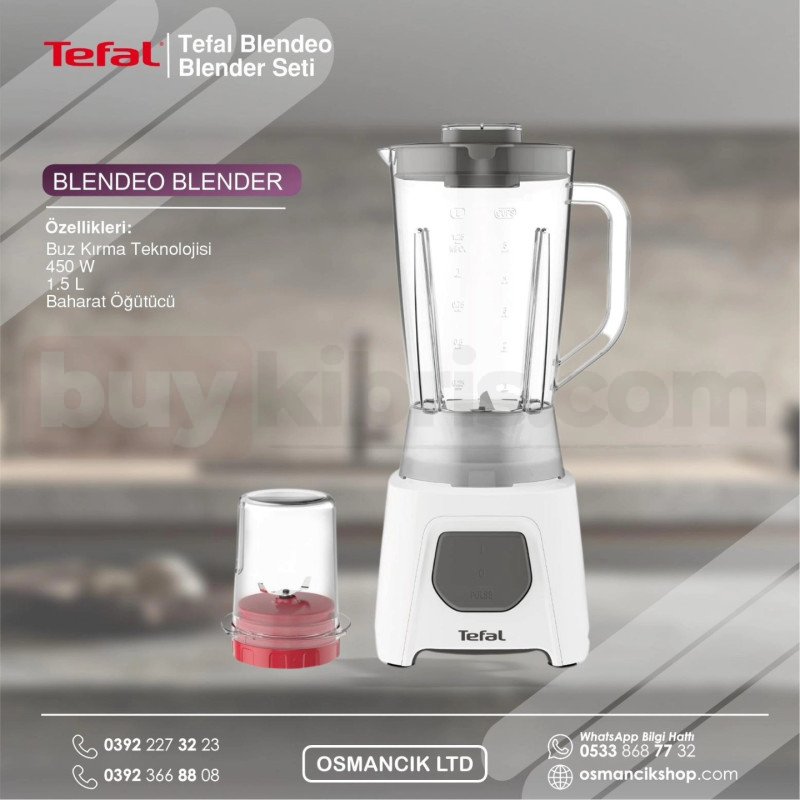 Tefal Blendeo Blender Seti, mutfakta pratik ve hızlı hazırlıklar yapmak için tasarlanmış kullanışlı bir blender modelidir. 450 W gücü sayesinde meyve, sebze ve farklı malzemeleri kolayca karıştırarak pürüzsüz kıvam elde etmenizi sağlar. 1.5 litrelik geniş haznesi sayesinde tek seferde daha fazla karışım hazırlayabilir, buz kırma teknolojisi ile soğuk içecekler ve smoothie’ler hazırlayabilirsiniz. Ayrıca baharat öğütücü aparatı sayesinde kahve ve baharatları da kolayca öğüterek çok yönlü bir kullanım sunar. Modern tasarımı ve pratik özellikleriyle mutfakta günlük kullanım için ideal bir yardımcıdır.