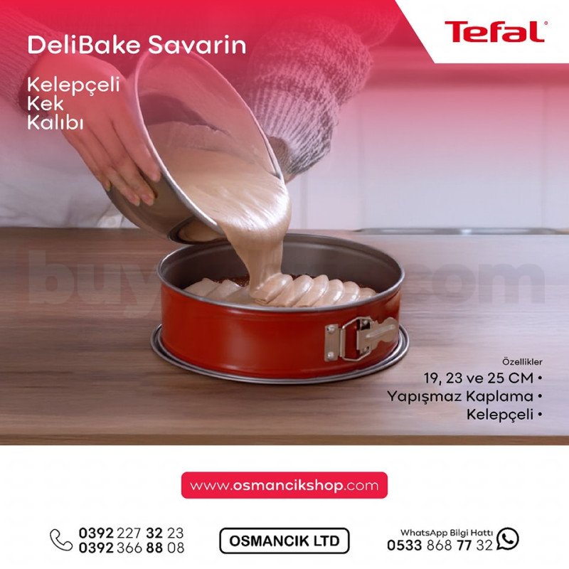 Tefal DeliBake Savarin kelepçeli kek kalıbı, pratik kullanımı ve kaliteli yapısıyla mutfakta kusursuz sonuçlar elde etmenizi sağlar. 19, 23 ve 25 cm seçenekleri ile farklı tariflere uyum sağlarken, yapışmaz kaplama yüzeyi sayesinde kek ve pastalar kalıptan kolayca çıkar. Kelepçeli yapısı sayesinde servis sürecini pratik hale getirir ve temizlik oldukça kolaydır. Dayanıklı malzemesi ve kullanışlı tasarımıyla hem günlük kullanım hem de özel tarifler için ideal bir mutfak yardımcısıdır.