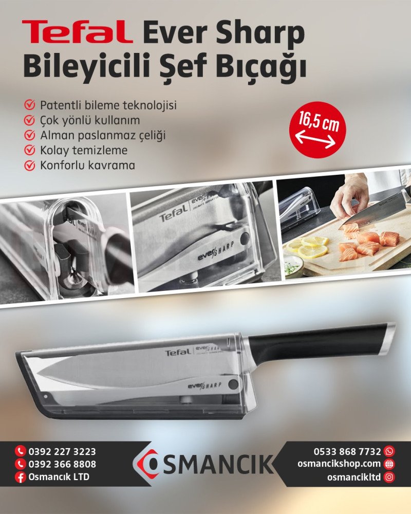 Tefal Ever Sharp Bileyicili 16,5 cm Şef Bıçağı | buykibris.com