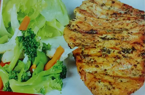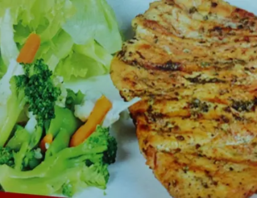 Izgara tavuk göğüs, mevsim sebzeleri, yoğurt, salata