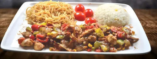 180 gr. jülyen tavuk, yeşil biber, mantar, havuç, soya sosu, soğan. Makarna, pilav ile