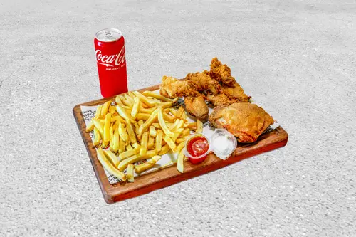 Büyük Tavuk + Acılı Kanat (6 Adet) + Patates Kızartması + Özel Sos + İçecek