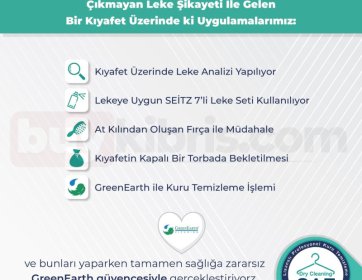 Zorlu ve çıkmayan lekeler için uyguladığımız profesyonel süreçlerle kıyafetlerinizi güvenle temizliyoruz. Öncelikle lekenin türü detaylı şekilde analiz edilir, ardından lekeye özel ürünler ve hassas ekipmanlarla müdahale edilir. Kumaşa zarar vermeden yapılan bu işlemler, GreenEarth teknolojisi ile tamamlanarak derinlemesine ve sağlıklı bir temizlik sağlar. Tüm süreç boyunca hem kıyafetleriniz hem de sağlığınız korunur, en iyi sonuç hedeflenir.