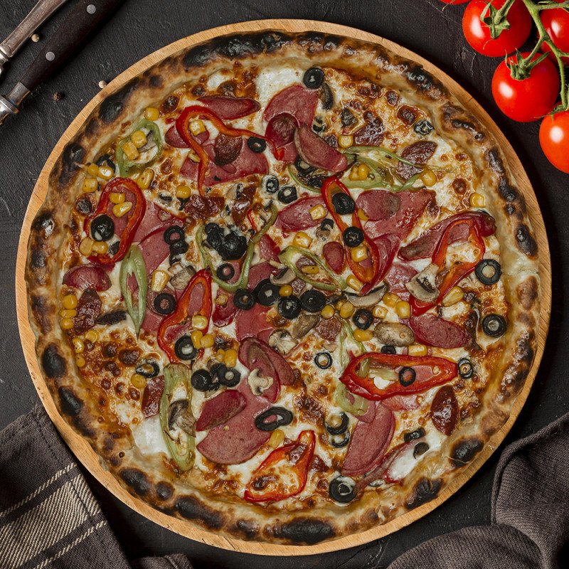 Özel sos ,mozarella peyniri, doping sucuk ,mantar ,mısır ,yeşil biber