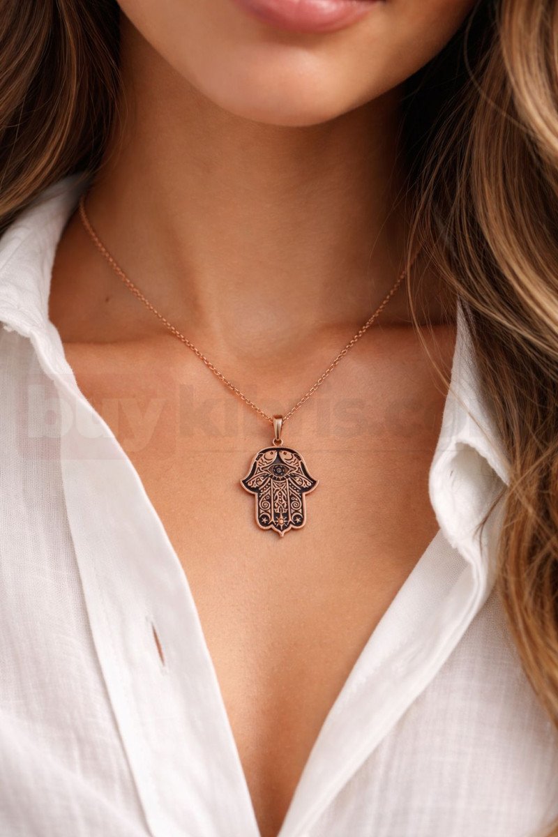 Klasik ve zamansız bir sembol olan Fatma Ana Eli, bu kolyede zarif detaylarla yeniden yorumlanmıştır. Hem koruyucu anlamı hem de estetik görünümüyle öne çıkan bu tasarım, günlük kullanım için idealdir. Evde butik seçkisi içinde yer alan bu kolye, sade şıklığı ve anlamı bir arada sunar. Her kombinle uyum sağlayarak stilinizi tamamlar.