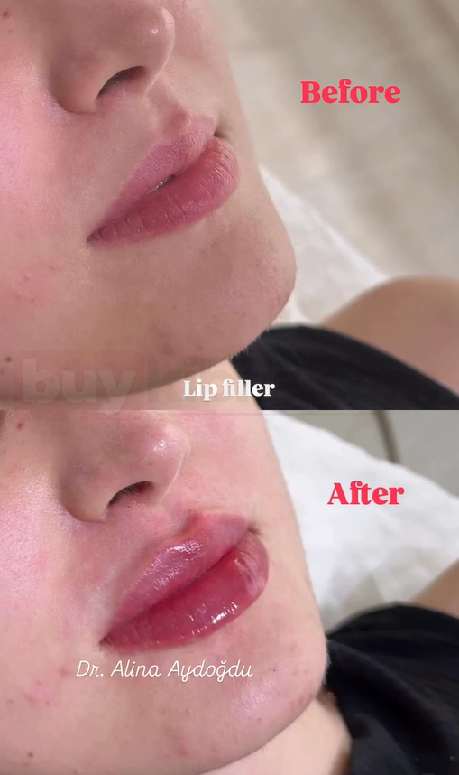 Dr. Alina Aydoğdu tarafından uygulanan dudak dolgusu işlemi, dudaklara hacim kazandırırken aynı zamanda daha belirgin ve canlı bir görünüm oluşturur. Öncesi ve sonrası karşılaştırmasında, dudakların dolgunlaştığı, konturunun netleştiği ve genel görünümün daha dikkat çekici hale geldiği görülmektedir.