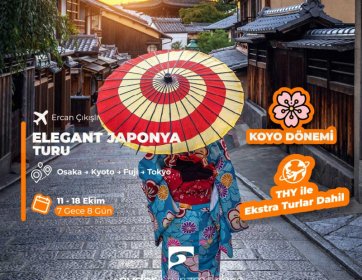 Osaka’dan Kyoto’ya, Fuji’den Tokyo’ya uzanan bu özel turda Japonya’nın eşsiz kültürünü ve büyüleyici atmosferini yakından deneyimleyin. Koyo döneminin renkleriyle doğanın en etkileyici haline tanıklık ederken, THY uçuşları ve ekstra turlar dahil konforlu bir seyahat sizi bekliyor. 11-18 Ekim tarihleri arasında 7 gece 8 gün sürecek bu unutulmaz yolculuğa hazır olun.
