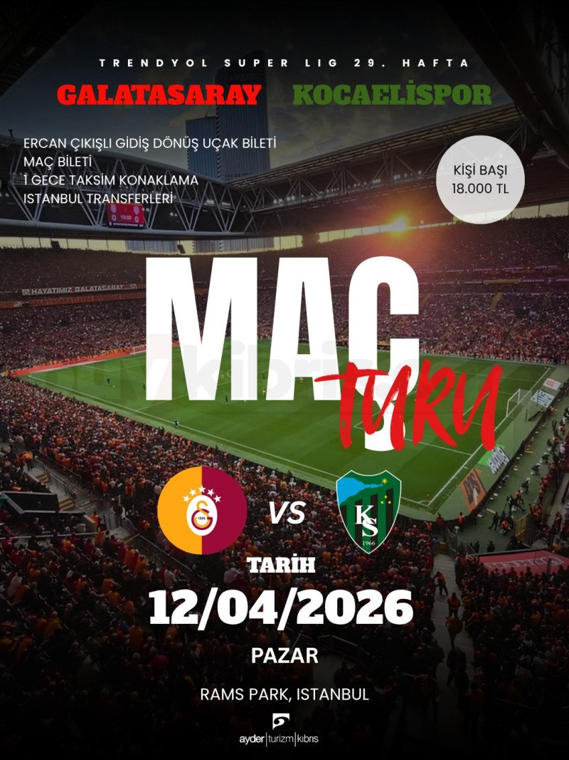 Trendyol Süper Lig heyecanını yerinde yaşamak isteyenler için özel maç turu. Ercan çıkışlı uçak bileti, maç bileti, 1 gece Taksim konaklama ve İstanbul transferleri dahil paketle konforlu bir organizasyon sunuluyor. 12 Nisan 2026’da RAMS Park’ta oynanacak bu karşılaşmayı kaçırmayın.