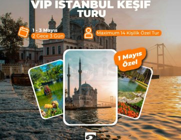 İstanbul’un tarihi ve doğal güzelliklerini ayrıcalıklı bir deneyimle keşfetmek isteyenler için özel olarak hazırlanmış VIP tur programı. 1-3 Mayıs tarihleri arasında, maksimum 14 kişilik özel grupla konforlu ve keyifli bir seyahat sunuluyor. 2 gece 3 gün sürecek bu özel turla İstanbul’u farklı bir bakış açısıyla deneyimleyin.