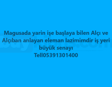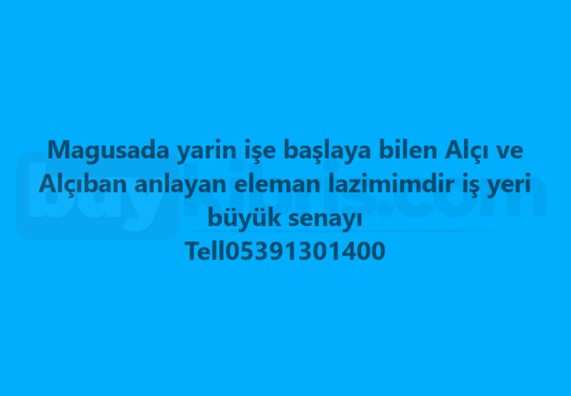 Mağusada yarın işe başlayabilen alçı v e alçıban anlayan eleman lazımdır işyeri büyük sanayi tel : 05391301400
