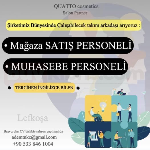 Şirketimiz bünyesinde çalışabilecek satış personeli arıyoruz tercihen ingilizce bilen olması rica olunur