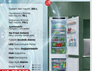 Gündoğ Home tarafından Kıbrıs’ta sunulan Stilevs ankastre buzdolabı, modern mutfak tasarımını ileri seviye saklama teknolojileriyle bir araya getirir. 253 litrelik toplam net hacmi, No-Frost sistemi, hızlı soğutma ve hızlı dondurma özellikleri sayesinde yiyeceklerinizi daha uzun süre taze tutmanıza yardımcı olur. Temperli cam rafları, dokunmatik LED paneli ve kapı yönü değiştirilebilir yapısı ile kullanım esnekliği sağlayan bu model, ankastre mutfaklara kusursuz uyum sunar. Estetik görünüm, fonksiyonellik ve enerji verimliliğini tek bir üründe buluşturan bu buzdolabı, Gündoğ Home kalitesiyle Kıbrıs’ta yaşam alanlarını daha düzenli, daha şık ve daha konforlu hale getirir.