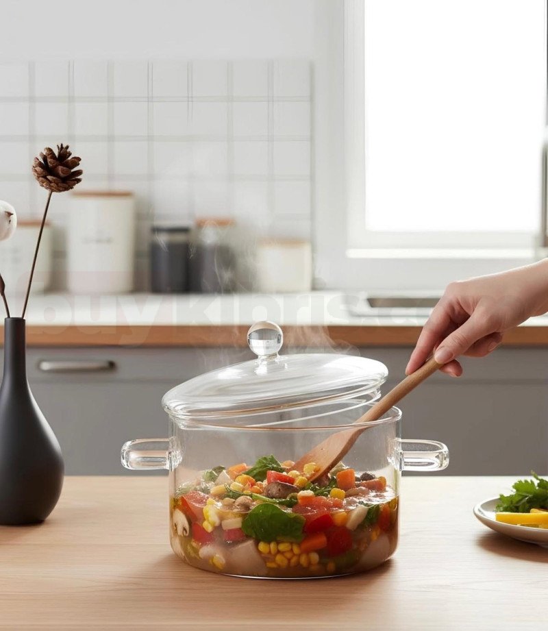 Modern mutfaklara estetik bir dokunuş katan amber cam tencere, hem dekoratif hem de işlevsel kullanım sunar. Isıya dayanıklı cam yapısı ile güvenli pişirme imkanı sağlarken, özel rengi sayesinde sunumlarınızı daha şık hale getirir. Minimal ve zarif tasarımı ile mutfakta fark yaratmak isteyenler için ideal bir üründür.