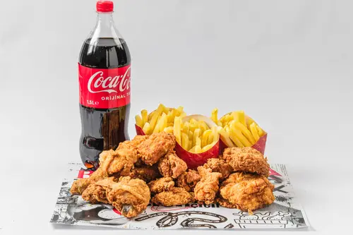 Çıtır Tavuk (Büyük Boy) (6 Adet) + Tavuk Kanat (6 Adet) + Patates Kızartması (3 Adet) + İçecek (1,5 L.)