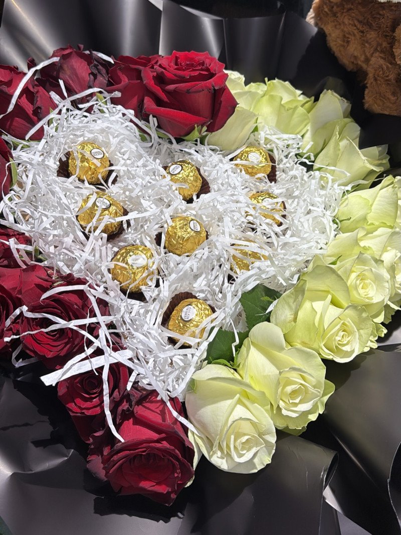 Candy World Çiçek Mağazası’nın özel tasarımı olan bu çikolatalı gül buketi, zarif kırmızı ve beyaz güllerin lezzetli dokunuşlarla birleştiği şık bir aranjmandır. Hem görsel hem de tat olarak etkileyici olan bu buket, Kıbrıs’ta sevdiklerinize farklı ve unutulmaz bir hediye sunmak isteyenler için ideal bir tercihtir. Özenle hazırlanan bu tasarım, Candy World kalitesiyle Kıbrıs genelinde özel anlarınıza eşlik eder.