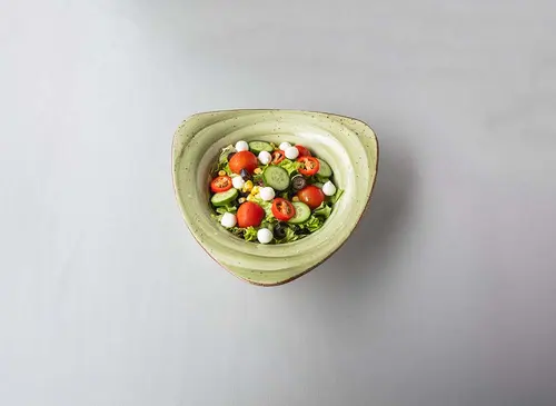 Domates, salatalık, marul, zeytin, beyaz peynir. Seçeceğiniz sos ile servis edilir.
