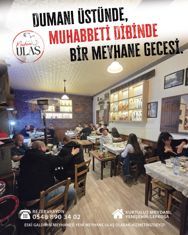 Sade ve sıcak dekorasyonu ile Ulaş Meyhane, klasik meyhane ruhunu yaşatır. İç mekanda kurulan masalar, dostlukların pekiştiği, sohbetlerin derinleştiği bir ortam sunar. Lefkoşa’da gerçek meyhane deneyimi arayanlar için ideal bir durak.