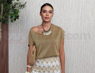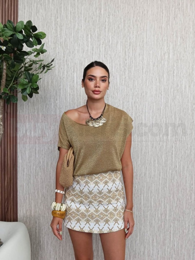 Şıklığı detaylarda gizli olan bu kombin, Morena Boutique’in özenle seçilmiş parçalarındandır. Gold tonlarındaki bluz ve modern desenli mini etek uyumu, enerjik ve dikkat çekici bir görünüm sunar. Kıbrıs’ta hem günlük hem özel kombinlerde rahatlıkla tercih edilebilir. Hafif kumaş yapısı sayesinde konfor sağlarken stilinden ödün vermez. Morena Boutique ile Kıbrıs’ta fark yaratan kombinler oluştur.
