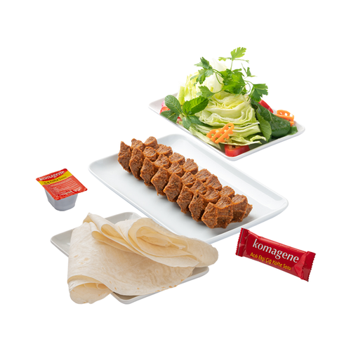 Çeyrek göbek marul, limon, 2 adet lavaş, 1 adet çiğ köfte sosu, 1 adet ekşi çiğ köfte sosu