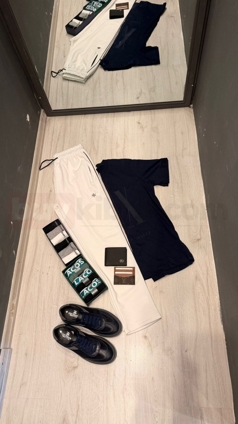 Kıbrıs’ın dinamik yaşamına uyum sağlayan sportif ve modern bir kombin. Açık renk eşofman altı ile koyu ton tişört dengeli bir kontrast oluştururken, sade tasarım gün boyu konfor sunar. Sneaker ve minimal aksesuarlarla tamamlanan bu stil; günlük kullanım, alışveriş ve şehir içi aktiviteler için hem rahat hem de şık bir alternatif sunar.
