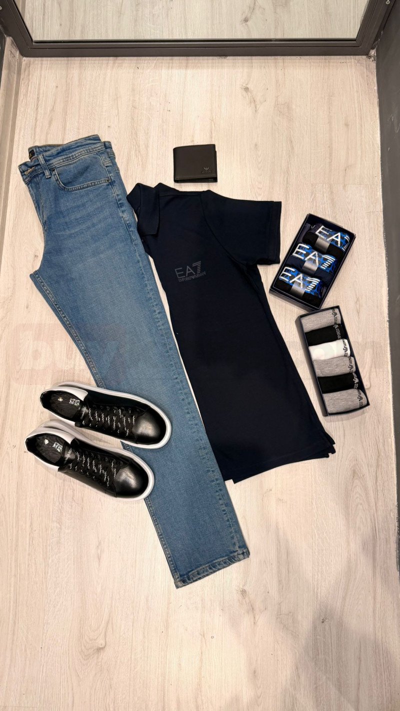 Kıbrıs’ta sade ama karakterli bir stil arayanlar için hazırlanan bu kombin, siyahın güçlü duruşunu açık ton denim ile dengeliyor. Minimal logo detaylı tişört, modern kesim jean ve tamamlayıcı sneaker ile gün boyu konforlu ve şık bir görünüm sunar. Günlük kullanımda hem spor hem de temiz bir stil yakalamak isteyenler için ideal bir tercihtir.