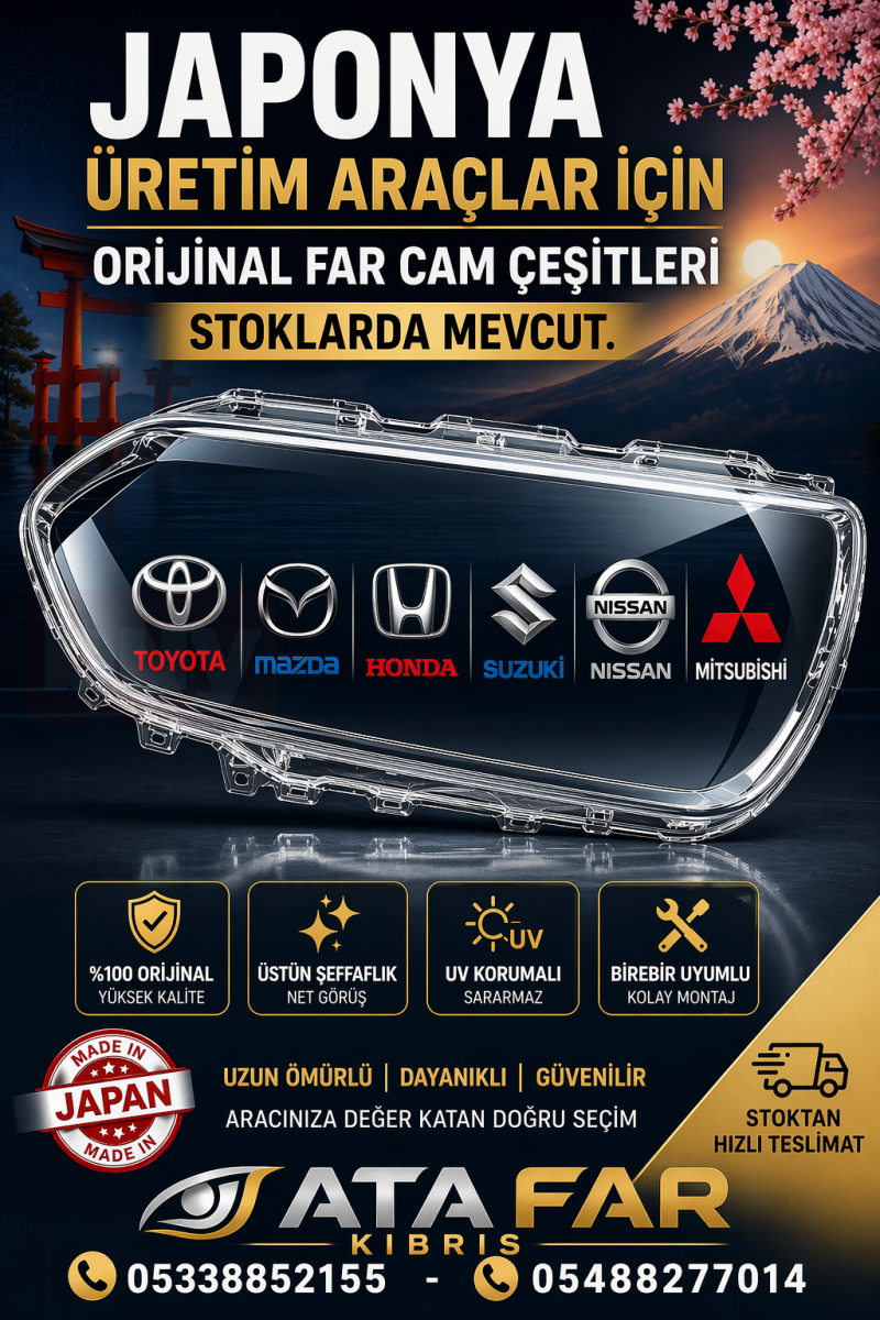 JAPON araçlar için far cam çeşitleri stoklarda.