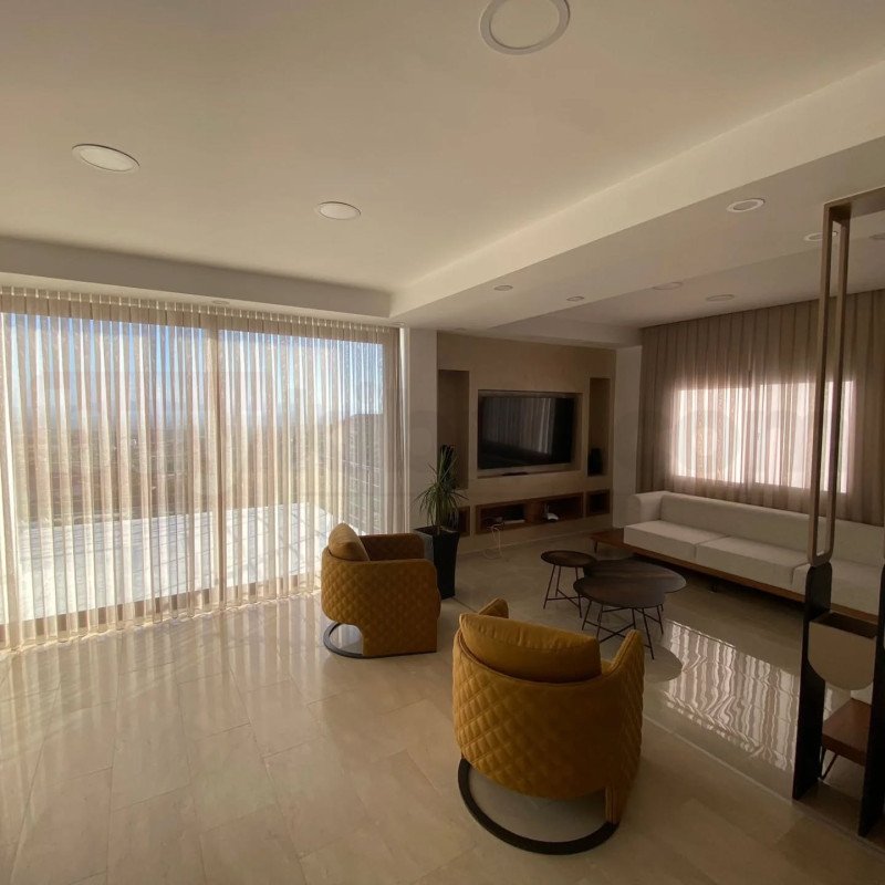 Günyıl Perde tarafından Kıbrıs’ta profesyonel olarak uygulanan bu köşe cam tül perde sistemi, geniş ve açılı cam yüzeyler için özel olarak tasarlanmıştır. Mekanı olduğundan daha geniş ve aydınlık gösteren yapısı sayesinde modern ev dekorasyonuna katkı sağlar. Zemine kadar uzanan kaliteli tül kumaşı ile hem estetik bir görünüm hem de pratik kullanım imkanı sunar.