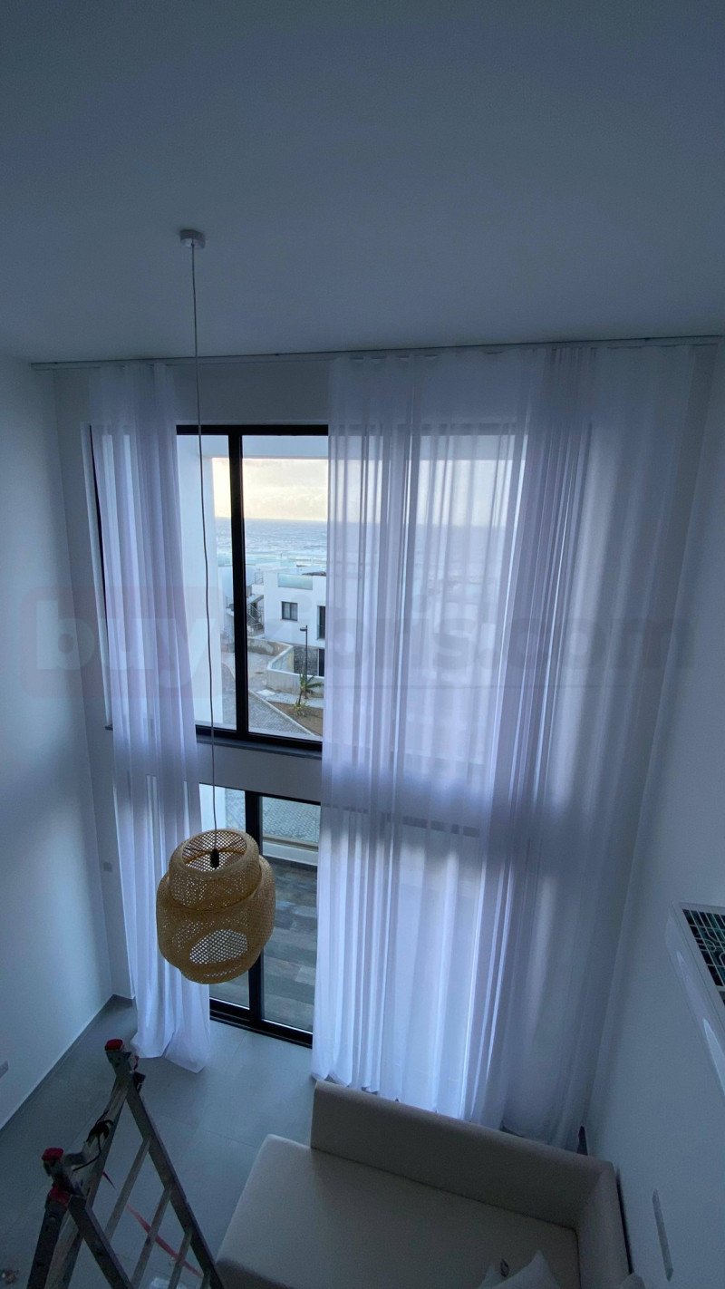 Günyıl Perde tarafından Kıbrıs’ta uygulanan bu yüksek tavan tül perde sistemi, geniş ve ferah mekanlar için özel olarak tasarlanmıştır. Tavandan zemine kadar uzanan yapısı sayesinde mekana derinlik ve zarif bir görünüm kazandırır. Gün ışığını yumuşatarak iç mekanda doğal bir aydınlatma sağlayan bu model, modern mimariyle mükemmel uyum sağlar.