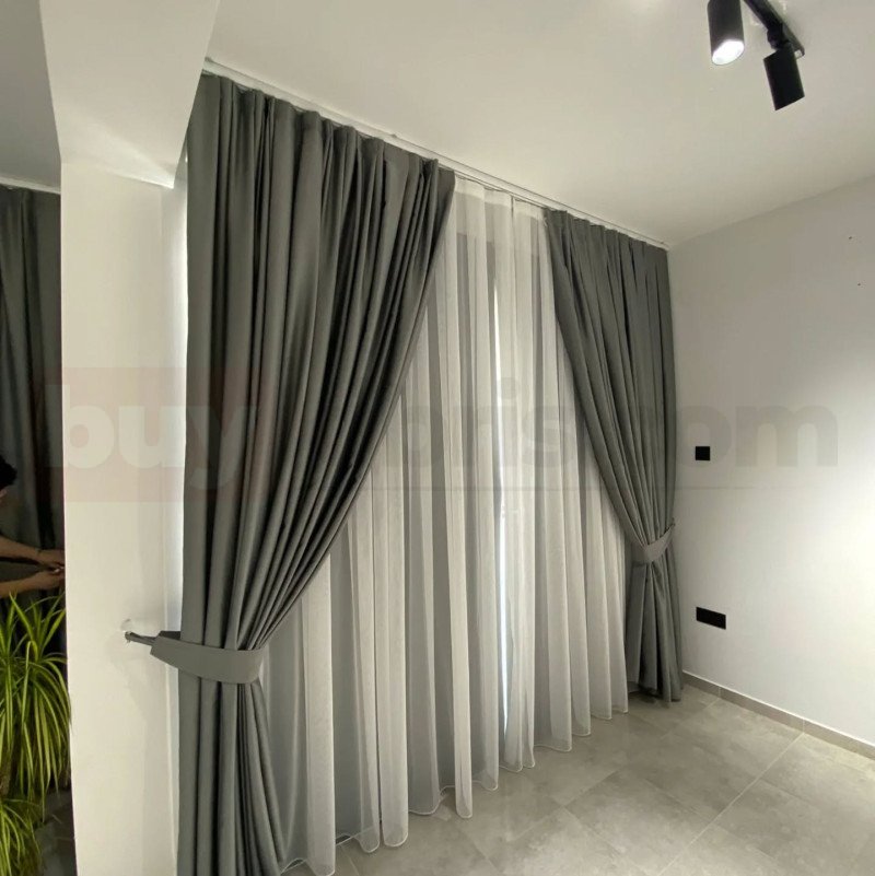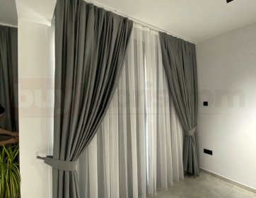 Modern Salonlar İçin Gri Fon Perde ve Tül Kombin | buykibris.com