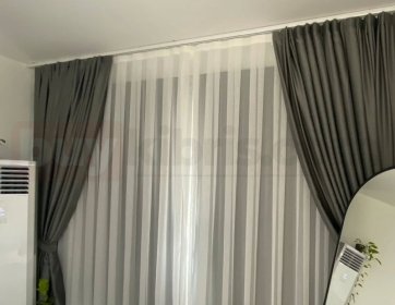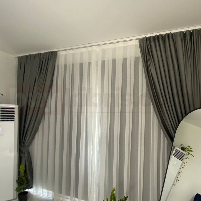 Günyıl Perde tarafından Kıbrıs’ta uygulanan bu gri tonlu fon perde ve tül kombinasyonu, modern yaşam alanlarına sade ve şık bir dokunuş kazandırır. Kalın fon perdeler mahremiyet sağlarken, iç kısımdaki tül perde gün ışığını yumuşatarak iç mekanda dengeli bir aydınlatma oluşturur. Estetik duruşu ve kaliteli kumaşı sayesinde uzun ömürlü ve kullanışlı bir çözüm sunar.