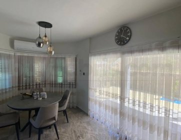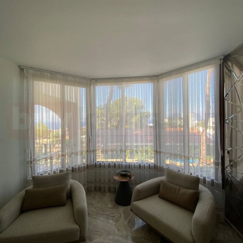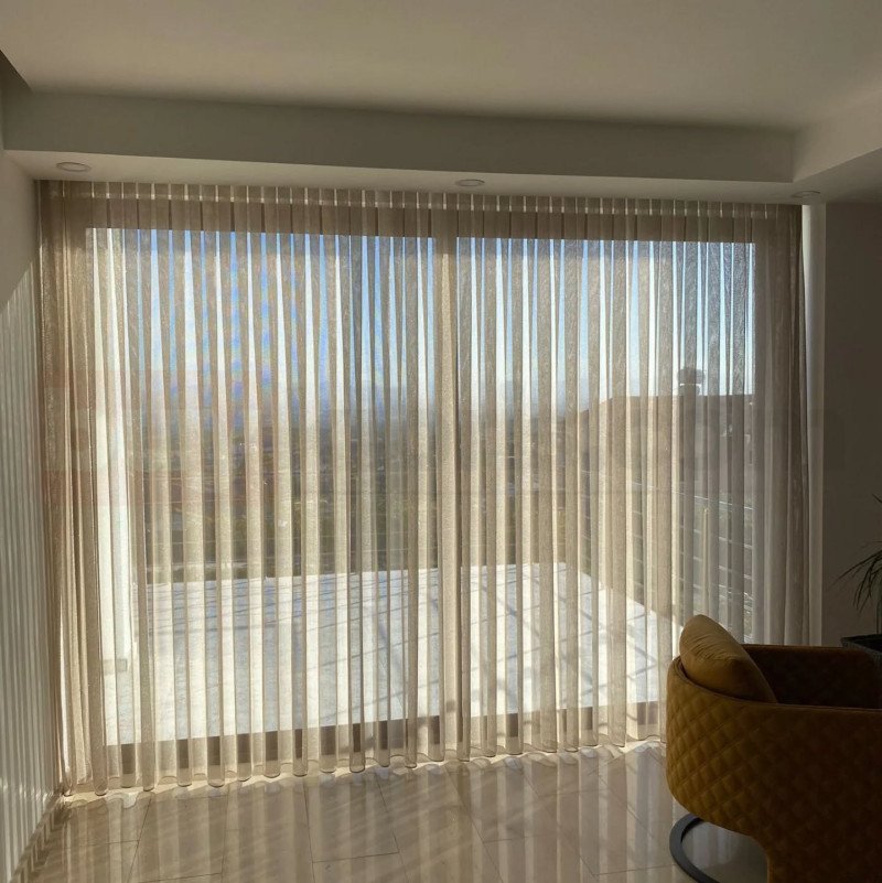 Günyıl Perde kalitesiyle Kıbrıs’ta uygulanan bu geniş alan tül perde sistemi, özellikle salon ve yemek alanlarında ferah bir görünüm oluşturur. Gün ışığını doğal şekilde içeri alarak mekana aydınlık ve huzurlu bir atmosfer kazandırır. Tavandan zemine uzanan yapısı ile modern dekorasyonla uyum sağlayan bu model, hem estetik hem de fonksiyonel kullanım sunar.