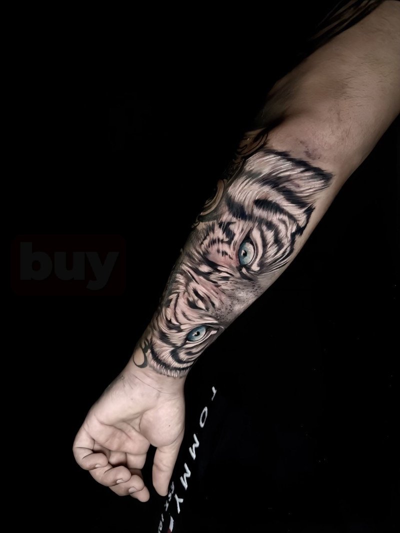 Bu kaplan dövmesi, Ercan Tattoo’nun siyah-gri realistik çalışmalarındaki başarısını net şekilde gösterir. Kaplanın gözlerindeki yoğun ifade ve kürk detayları, yüksek seviyede gölgelendirme tekniği ile işlenmiştir. Kol boyunca uzanan tasarım, hareketli bir yapı oluşturur ve kas anatomisine uyum sağlar. Güç ve özgüven temalı dövmeler arasında öne çıkan bir çalışmadır.