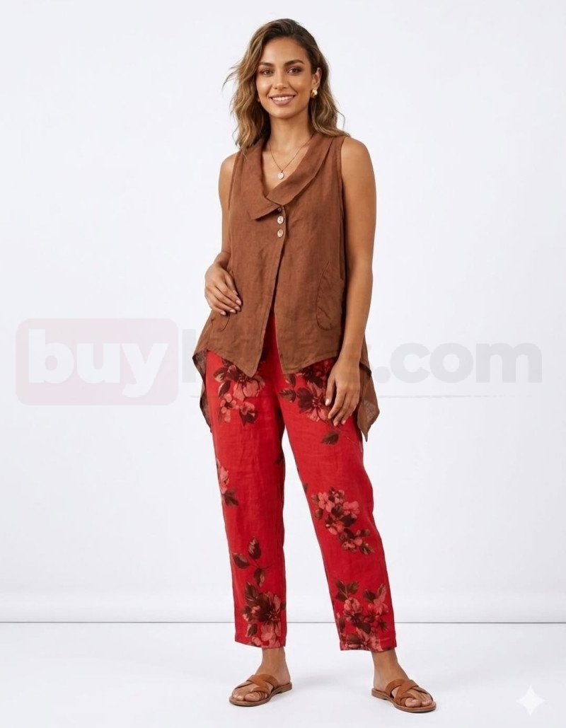 Günlük şıklığı modern dokunuşlarla buluşturan bu özel kombin, rahatlığı ve zarafeti bir arada sunuyor. Hafif ve nefes alan kumaştan üretilmiş kahverengi bluz, salaş kesimiyle gün boyu konfor sağlarken; kırmızı çiçek desenli pantolon enerjik ve dikkat çekici bir stil oluşturur. Özellikle yaz aylarında hem şehir hayatında hem de tatil kombinlerinde rahatlıkla tercih edilebilir. Senorita Butik’in Kıbrıs’taki koleksiyonunda yer alan bu kombin, stiline farklılık katmak isteyenler için ideal bir seçimdir.