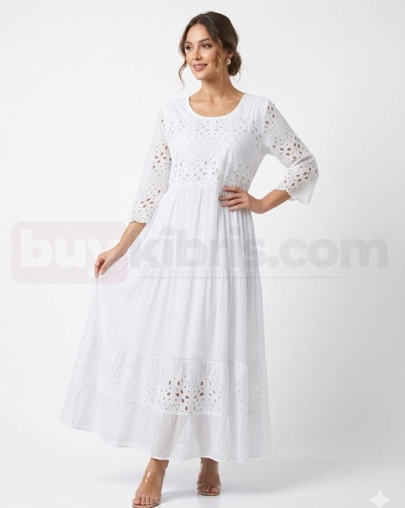Saf ve zarif görünümüyle dikkat çeken beyaz uzun elbise, minimal şıklığı sevenler için tasarlandı. Üzerindeki ince detaylı işlemeler ve katlı yapısı, elbiseye hem romantik hem de modern bir hava katmaktadır. Hafif kumaşı sayesinde özellikle sıcak Kıbrıs günlerinde konforlu bir kullanım sağlar. Senorita Butik koleksiyonunda yer alan bu özel tasarım, sade ama etkileyici bir stil arayanlar için mükemmel bir tercihtir.