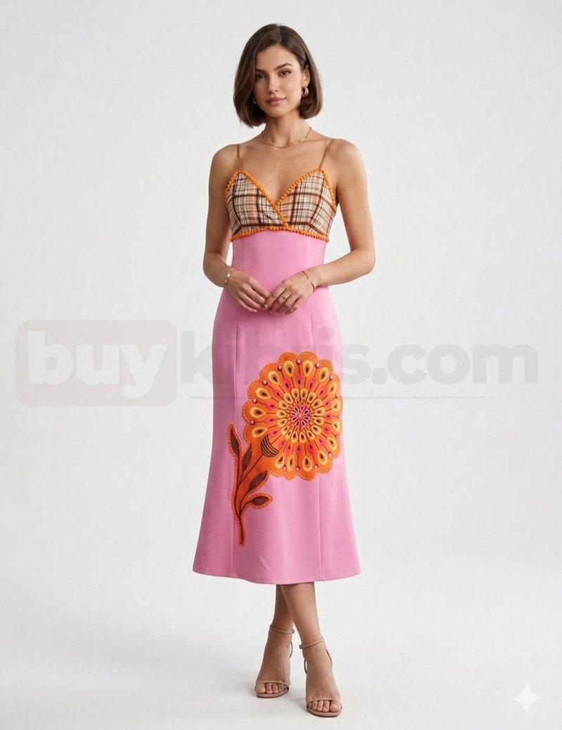 Canlı renkleri ve özgün desenleriyle dikkat çeken bu askılı midi elbise, enerjik ve modern bir stil sunar. Üst kısmındaki detaylı tasarım ile alt bölümdeki çiçek deseni birleşerek göz alıcı bir bütünlük oluşturur. Günlük kombinlerde ya da özel buluşmalarda fark yaratmak isteyenler için ideal olan bu parça, Senorita Butik’in Kıbrıs’taki trend ürünleri arasında yer almaktadır.