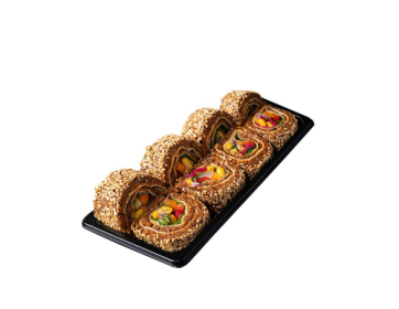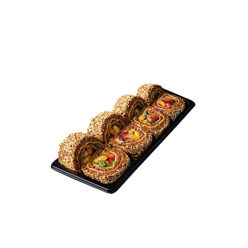 Dolgun lavaş, 100 gr. çiğ köfte, roka, maydanoz, nane, salatalık turşusu, havuç, mor soğan, mor lahana, mısır, közlenmiş biber, burger sos, susam
