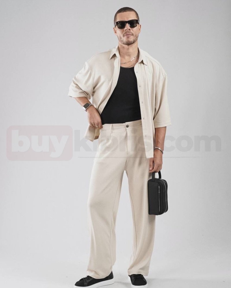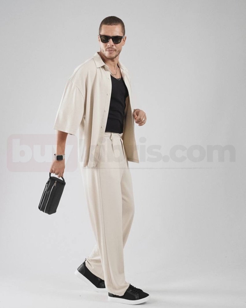 Zarif ve sade şıklığın öne çıktığı bu bej tonlu erkek kombin, modern stil anlayışını konforla birleştirir. Rahat kesim gömlek ve pantolonun uyumu, içte kullanılan kontrast siyah atlet ile dengelenerek güçlü bir görünüm oluşturur. Günlük kullanımdan özel davetlere kadar geniş bir kullanım alanı sunan bu kombin, minimal ama dikkat çekici detaylarıyla stilinizi bir adım öne taşır. Zuzu Butik güvencesiyle sunulan bu özel parça, Kıbrıs’ta erkek modasını yakından takip edenler için özenle seçilmiştir. Hem rahatlığı hem de şıklığı bir arada arayanlar için ideal bir kombin alternatifidir.