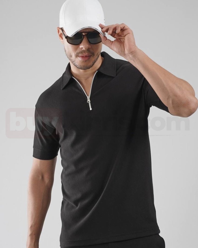 Fermuar Detaylı Siyah Polo Kombin | buykibris.com