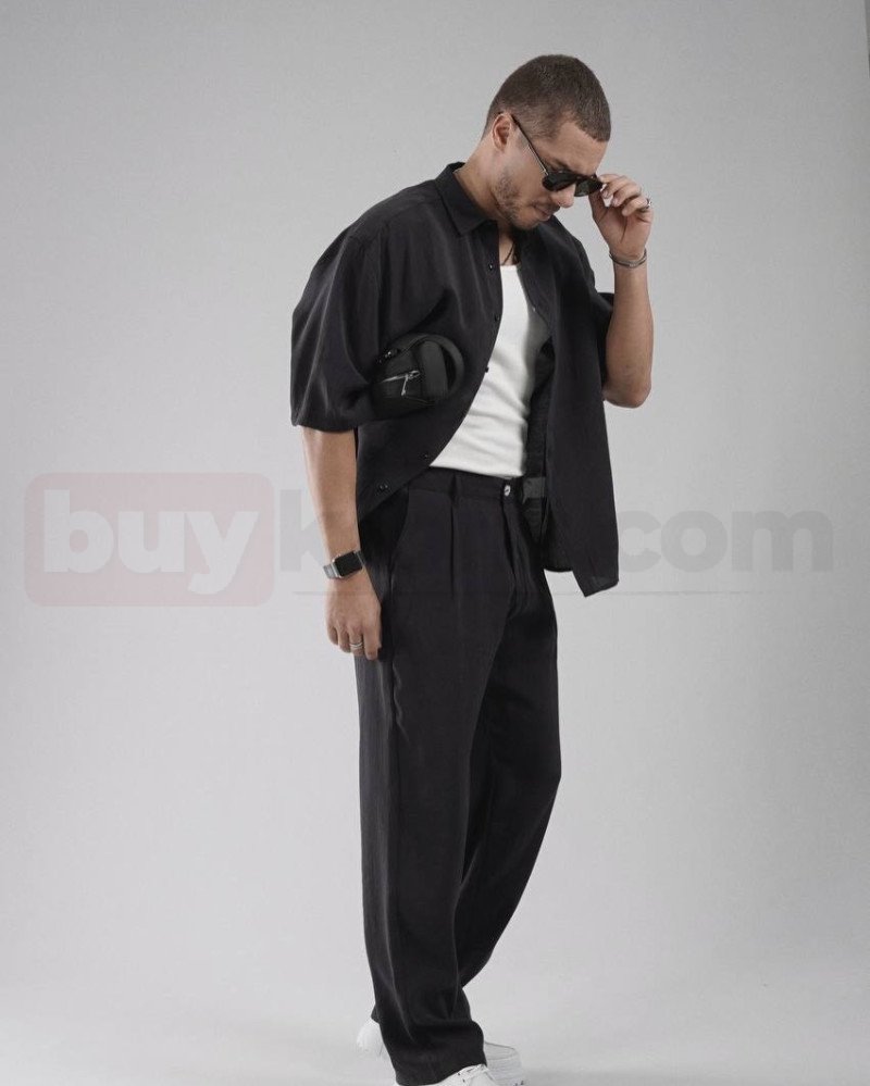 Zamansız şıklığın en net örneklerinden biri olan bu siyah erkek kombin, sade ama etkileyici bir stil sunar. Kısa kollu oversize gömlek ile tamamlanan rahat kesim pantolon, içte kullanılan basic atlet ile dengeli bir görünüm oluşturur. Günlük kullanımda maksimum konfor sağlarken, şık detayları sayesinde özel ortamlarda da rahatlıkla tercih edilebilir. Minimal aksesuarlarla tamamlanan bu stil, modern erkek giyimin güçlü bir temsilidir. Zuzu Butik seçkisiyle sunulan bu kombin, Kıbrıs’ta stiline önem veren ve sade şıklığı benimseyen erkekler için özenle hazırlanmıştır.