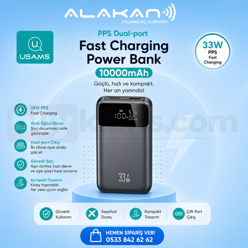 🔋 USAMS PPS 33W Fast Charging Power Bank (10000mAh) ile hızlı, güvenli ve akıllı şarj deneyimini keşfet!